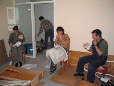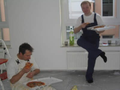 Bevor wir das Wohnzimmer in Angriff nahmen, stärkten wir uns mit Pizza.