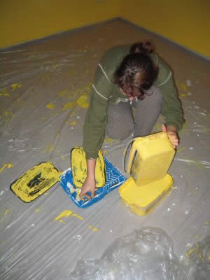 und Jörg trug sie auf die Wand auf.