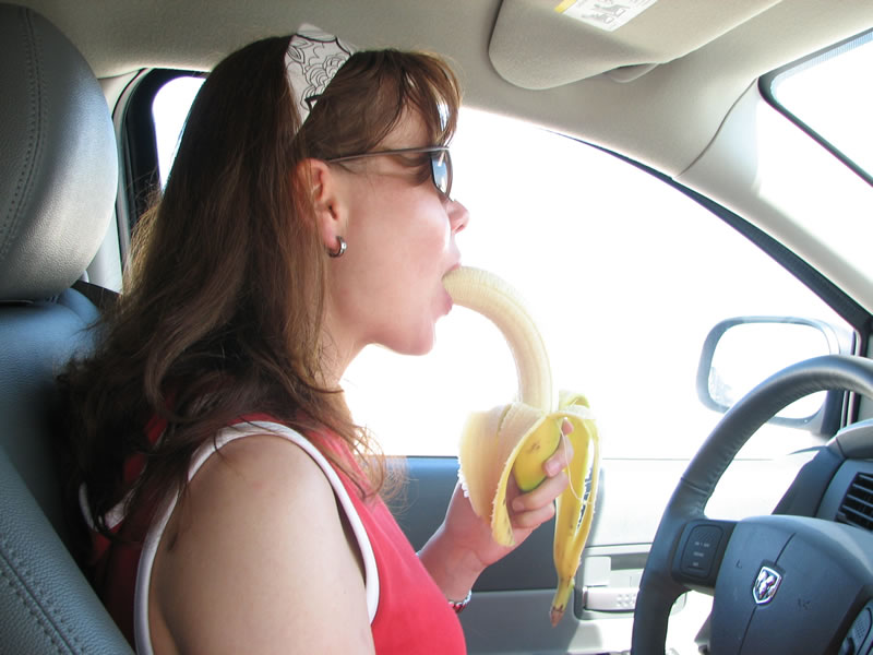 Andrea isst eine Banane.